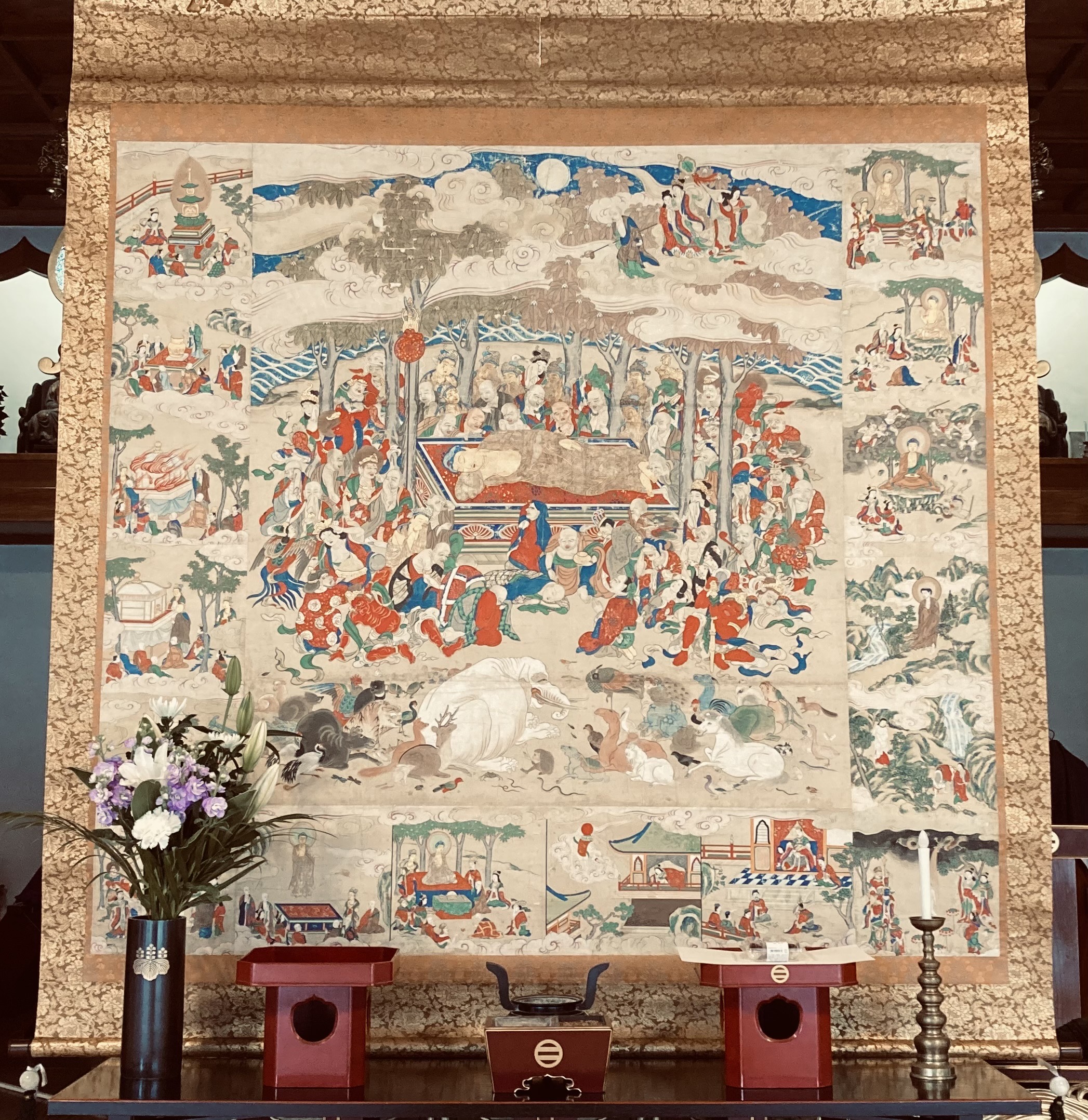 お釈迦さまのお亡くなりを悼む日です。涅槃図という大きな絵画を展示します。